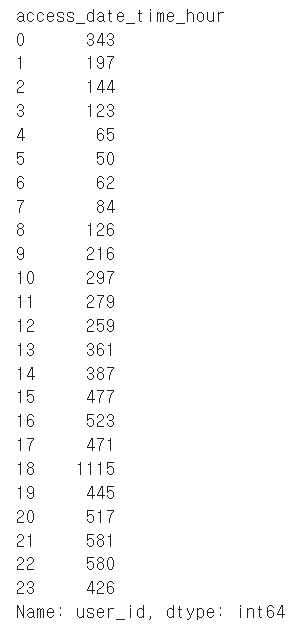 # -> access_date_time_hour 컬럼 기준으로 그룹화를 할거야.