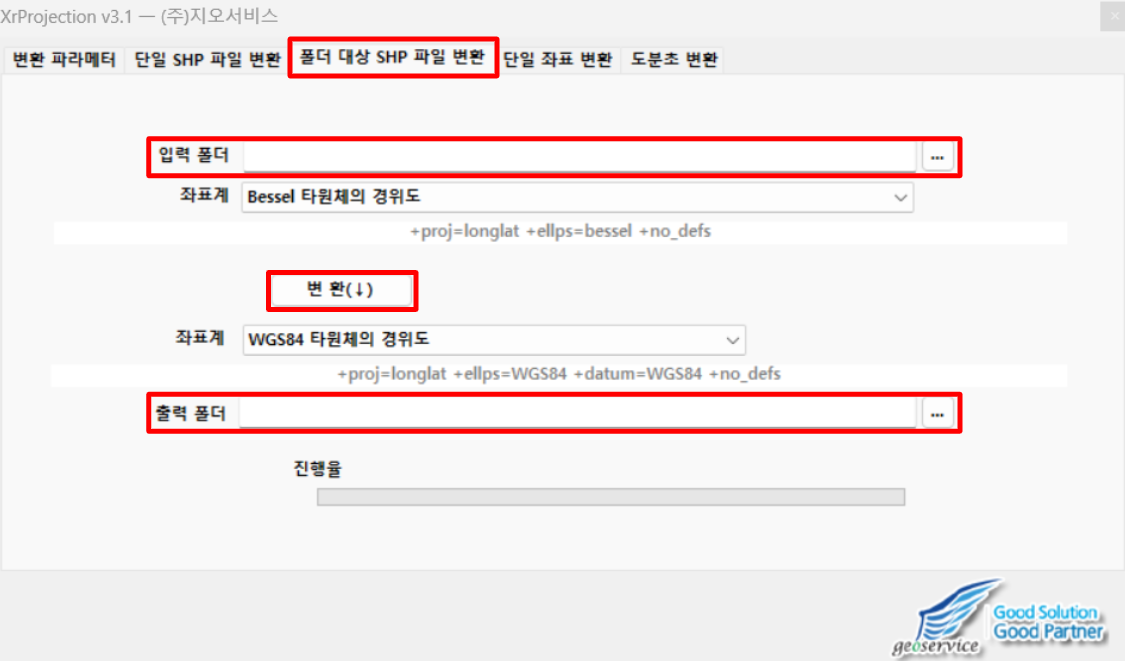 1) 상단 '폴더 대상 SHP 파일 변환' 클릭