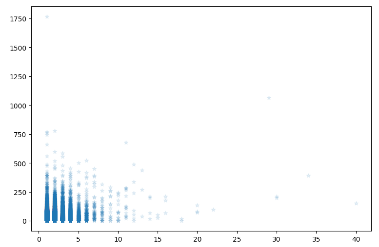 활용 도서 혼자 공부하는 데이터 분석 with 파이썬 : 네이버 도서 네이버 도서 상세정보를 제공합니다. search.shopping.naver.com plt.figure() 사용 방법 : plt.figure(figsize=(가로 사이즈, 세로 사이즈), dpi(해상도)=원하는 값) -> 그래프의 크기를 지정할 수 있다. 예제 코드 plt.figure(figsize=(9, 6)) # 그래프의 크기는 가로 9 , 세로 6으로 한다. plt.scatter(ns_book7['도서권수'], ns_book7['대출건수'], alpha=0.1) # x값은 ns_book7 데이터프레임의 "도서권수" 컬럼의 값들 # y값은 ns_book7 데이터프레임의 "대출건수" 컬럼의 값들 # 투명도는 0.1로 하고 # 산점도 그..